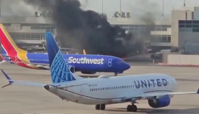 അമേരിക്കയിൽ വിമാനത്തിന് തീപിടിച്ചു; എഞ്ചിൻ തകരാറെന്നാണ് സൂചന