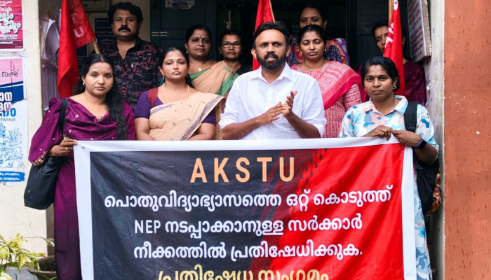കേന്ദ്ര വിദ്യാഭ്യാസ നയം മുന്നോട്ടുവെക്കുന്ന വാണിജ്യവൽക്കരണം, വർഗീയവല്കരണം, കേന്ദ്രവൽക്കരണം തുടങ്ങിയ അജണ്ടകൾ കേരളത്തിൽ നടപ്പാക്കാൻ ഒത്താശ ചെയ്യുന്ന സമീപനമാണ് പിഎംശ്രി പദ്ധതിയിൽ ഒപ്പിട്ടതിലൂടെ വിദ്യാഭ്യാസ വകുപ്പ് സ്വീകരിച്ചിട്ടുള്ളത്. ഇടതുപക്ഷ മതേതര മൂല്യങ്ങൾ ഉയർത്തിപ്പിടിക്കുന്ന കേരളത്തിന്റെ വിദ്യാഭ്യാസ സംസ്കാരം സംരക്ഷിക്കാനുള്ള പോരാട്ടങ്ങളുടെ തുടർച്ചയാണ് ഈ പോരാട്ടങ്ങള്. പ്രതിഷേധ സംഗമം എ കെ എസ് ടി യു സംസ്ഥാന എക്സിക്യൂട്ടീവ് അംഗം ഉണ്ണി ശിവരാജൻ ഉദ്ഘാടനം ചെയ്തു. ജില്ലാ പ്രസിഡന്റ് മഞ്ജുഷ അലക്സ് അധ്യക്ഷത വഹിച്ചു. ജില്ലാ നേതാക്കളായ ടി ലിജിമോൾ, രാധിക ബിനു, ജിതാ ജ്യോതിസ്, മിനി ബാബു തുടങ്ങിയവർ സംസാരിച്ചു.