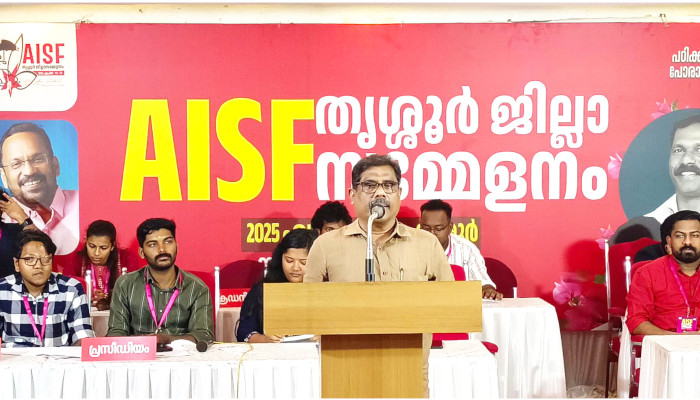 എഐഎസ്എഫ് ജില്ലാ സമ്മേളനം രണ്ടാം ദിനത്തിൽ സിപിഐ ജില്ലാ സെക്രട്ടറി കെ കെ വത്സരാജ്, അസിസ്റ്റന്റ് സെക്രട്ടറി ടി ആർ രമേഷ്കുമാർ, സിപിഐ ജില്ലാ എക്സിക്യൂട്ടീവ് അംഗങ്ങളായ ടി പ്രദീപ് കുമാർ, കെ എസ് ജയ, എഐവൈഎഫ് ജില്ല സെക്രട്ടറി പ്രസാദ് പറേരി, പ്രസിഡന്റ് ബിനോയ് ഷബീർ, എഐഎസ്എഫ് സംസ്ഥാന സെക്രട്ടറി പി കബീർ, സംസ്ഥാന പ്രസിഡന്റ് ആർ എസ് രാഹുൽ രാജ്, എഐഎസ്എഫ് ദേശീയ കൗൺസിൽ അംഗം അലൻപോൾ, സംസ്ഥാന വൈസ് പ്രസിഡന്റ് ടി ടി മീനൂട്ടി, സിജോ പൊറത്തൂർ എന്നിവർ സംസാരിച്ചു.
