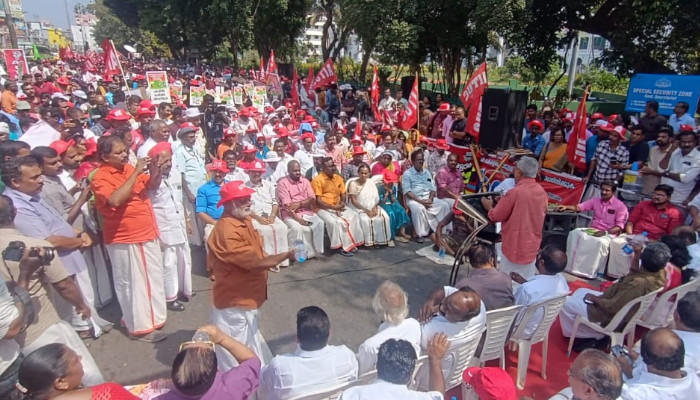 തൊഴിലും വേതനവും അവകാശപ്പെട്ട സാമൂഹ്യ സുരക്ഷാ ആനുകൂല്യങ്ങളും സംരക്ഷിയ്ക്കുന്നതിന് സംസ്ഥാന സർക്കാർ നടപടികൾ സ്വീകരിക്കണമെന്നും സംസ്ഥാനത്തോടുള്ള കേന്ദ്ര വിവേചനം തിരുത്തണമെന്നും ആവശ്യപ്പെട്ട് എഐടിയുസി സംസ്ഥാന കൗൺസിലിന്റെ നേതൃത്വത്തിൽ നടത്തിയ സെക്രട്ടേറിയറ്റ് മാര്ച്ച് ഉദ്ഘാടനം ചെയ്ത് സംസാരിക്കുകയായിരുന്നു അദ്ദേഹം. കുത്തക മുതലാളിമാരുടെയും കൊള്ളക്കാരുടെയും താല്പര്യങ്ങള് മാനിക്കുന്ന കേന്ദ്രസര്ക്കാരിന് മുന്നില് ഭാവി ഇന്ത്യയുടെ വഴികാട്ടിയായി നില്ക്കേണ്ടത് ഇടതുപക്ഷ മാര്ഗമാണ്. അതുകൊണ്ടാണ് എല്ലാ ഘട്ടങ്ങളിലും തൊഴിലാളി വര്ഗം ഇടതുപക്ഷ സര്ക്കാരിനെ സ്വന്തമായി കണ്ട് കൊണ്ട് സ്നേഹിക്കുന്നത്. ആ സര്ക്കാര് കേരളത്തില് ഭരിക്കുമ്പോള് ഇന്ത്യയ്ക്കായി വഴികാണിക്കേണ്ടത് അടിസ്ഥാനപരമായ പക്ഷപാതിത്വം തെളിയിച്ച്കൊണ്ടായിരിക്കണം. ആ പക്ഷപാതിത്വം പാവങ്ങള്ക്കൊപ്പം നില്ക്കലാണ്, തൊഴിലാളിയെ ചേര്ത്തുനിര്ത്തലാണ്, പൊതുമേഖലയെ കാത്തുരക്ഷിക്കലാണ്, ഭൂമിയെ, പ്രകൃതിയെ മനുഷ്യരെ, വിയര്പ്പിനെ അധ്വാനത്തെയെല്ലാം മാനിക്കലാണ്. എല്ഡിഎഫിന് അതറിയാം. അതുകൊണ്ട് നമ്മോട് പറഞ്ഞ കാര്യങ്ങള് പാലിക്കാന് തയ്യാറാകണമെന്ന് എല്ഡിഎഫിനോട് പറയുന്നതായും ബിനോയ് വിശ്വം പറഞ്ഞു.