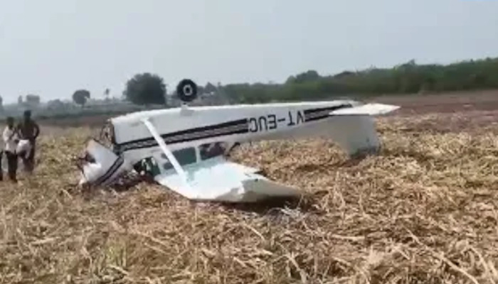കർണാടകയിൽ സ്വകാര്യ പരിശീലന വിമാനം തകർന്നുവീണു; വിമാനത്തിലുണ്ടായിരുന്ന ക്യാപ്റ്റനും പൈലറ്റിനും പരിക്ക്