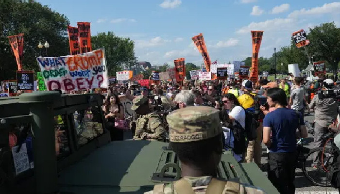 നഗരത്തിലെ ക്രമസമാധാന പരിപാലനം ഫെഡറല് സേന ഏറ്റെടുക്കുന്നതിനെതിരെ വാഷിങ്ടണ് ഡിസിയില് പ്രതിഷേധം. പൊലീസിന്റെ ചുമതലകള് ഫെഡറല് സേനയ്ക്ക് കെെമാറിയതിനെതിരെ നൂറുക്കണക്കിനാളുകള് നഗരത്തിലെ വിവിധ ഭാഗങ്ങളില് പ്രതിഷേധവുമായി ഒത്തുകൂടി. ഫാസിസ്റ്റുകള് മടങ്ങിപോകൂ എന്ന മുദ്രാവാക്യമുയര്ത്തിയാണ് ഫെഡറല് ചെക്ക്പോയിന്റിലെ ഉദ്യോഗസ്ഥർക്ക് നേരെ നഗരവാസികള് പ്രതിഷേധമറിയിച്ചത്.