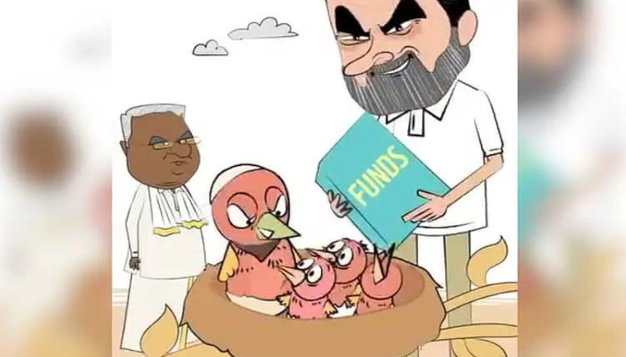 കന്നഡയില്‍ “സൂക്ഷിക്കുക.. സൂക്ഷിക്കുക.. സൂക്ഷിക്കുക..!” എന്ന അടിക്കുറിപ്പോടെയാണ് ആനിമേറ്റഡ് വീഡിയോ സമൂഹമാധ്യമത്തില്‍ പ്രത്യക്ഷപ്പെട്ടത്. ഒരു കിളിക്കൂട്ടിൽ “എസ്‌സി [പട്ടികജാതി], എസ്ടി [പട്ടികവർഗം], ഒബിസി [മറ്റ് പിന്നാക്ക വിഭാഗങ്ങൾ] എന്ന് അടയാളപ്പെടുത്തിയിരിക്കുന്ന മൂന്ന് മുട്ടകള്‍ കാണാം. അതിനൊപ്പം രാഹുല്‍ ഗാന്ധിയും സിദ്ധരാമയ്യയും ഒന്നിച്ചെത്തി മുസ്ലിം എന്നെഴുതിയിരിക്കുന്ന ഒരു മുട്ട വയ്ക്കുന്നതും വീഡിയോയില്‍ കാണിച്ചിരിക്കുന്നു.