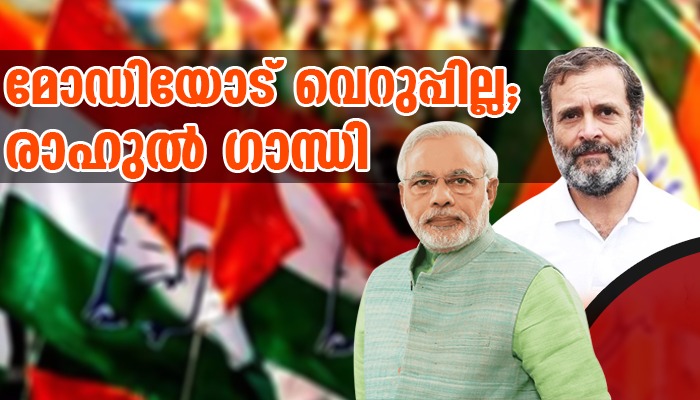 മോഡിയോട് വിദ്വേഷമൊന്നുമില്ല. ഒരിക്കലും മോഡിയെ ശത്രുവായി കരുതിയിട്ടില്ല. ഇപ്പോള് മോഡി ചെയ്തുകൊണ്ടിരിക്കുന്ന കാര്യങ്ങള് കാണുമ്പോള് സഹാനുഭൂതിയും അനുകമ്പയും മാത്രമാണുള്ളതെന്നും രാഹുല് ഗാന്ധി പറഞ്ഞു.