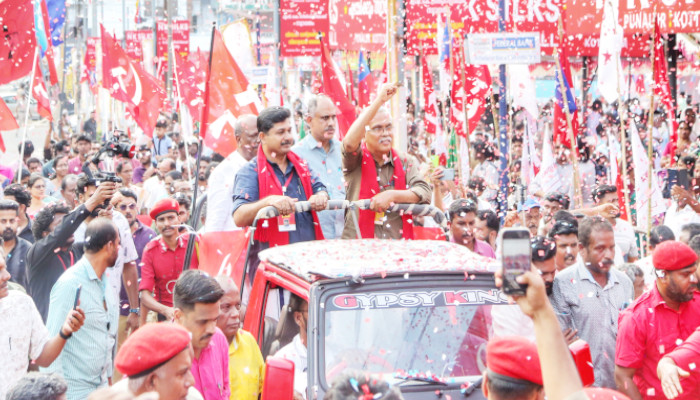 സമാനതകളില്ലാത്ത ജനമുന്നേറ്റം സൃഷ്ടിച്ച് എല്ഡിഎഫ് മേഖലാ ജാഥകള് പര്യടനം തുടരുന്നു. വാദ്യഘോഷങ്ങളുടെയും നാടൻ കലാരൂപങ്ങളുടെയും അകമ്പടിയോടെ ആയിരങ്ങളാണ് ഓരോ കേന്ദ്രങ്ങളിലും ജാഥകളെ വരവേറ്റത്. സിപിഐ സംസ്ഥാന സെക്രട്ടറി ബിനോയ് വിശ്വം നയിക്കുന്ന തെക്കന് മേഖലാ ജാഥ കൊല്ലം, സിപിഐ(എം) സംസ്ഥാന സെക്രട്ടറി എം വി ഗോവിന്ദന് ലീഡറായുള്ള വടക്കന് മേഖലാ ജാഥ കോഴിക്കോട്, മലപ്പുറം, കേരള കോണ്ഗ്രസ് ചെയര്മാന് ജോസ് കെ മാണി നയിക്കുന്ന മധ്യമേഖലാ ജാഥ കോട്ടയം, ഇടുക്കി ജില്ലകളിലാണ് ഇന്നലെ പര്യടനം നടത്തിയത്. തെക്കന് മേഖലജാഥ കൊല്ലം ജില്ലയില് പത്തനാപുരം, പുനലൂര്, കൊട്ടാരക്കര, കുന്നത്തൂര് മണ്ഡലങ്ങളില് പര്യടനം നടത്തി. ജില്ലാ അതിര്ത്തിയായ പത്തനാപുരത്ത് ചുവപ്പ് സേന ഉജ്വല വരവേല്പ് നല്കി. പത്തനാപുരം സെന്ട്രല് ജങ്ഷനില് നിന്നും സല്യൂട്ട് നല്കി സ്വീകരിച്ച് സമ്മേളന നഗരിയായ ജനതാ ഗ്രൗണ്ടിലേക്ക് ആനയിച്ചു. ജി ആര് രാജീവന് അധ്യക്ഷനായി. കൊട്ടാരക്കരയില് സ്വീകരണത്തില് എസ് രഞ്ജിത്ത് അധ്യക്ഷത വഹിച്ചു. തുടര്ന്ന് ചുവന്നമണ്ണായ കുന്നത്തൂര് മണ്ഡലത്തില് ജാഥയെത്തി. പി കെ ഗോപന് അധ്യക്ഷത വഹിച്ചു. ഇന്ന് കരുനാഗപ്പള്ളി, ചവറ, കുണ്ടറ, കൊല്ലം, ഇരവിപുരം മണ്ഡലങ്ങളിലാണ് സ്വീകരണം.