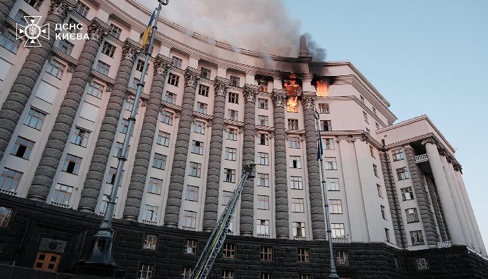 യുക്രൈനിലെ ഭരണസിരാകേന്ദ്രത്തിനു നേരെ റഷ്യൻ ആക്രമണം. കീവിലെ പെച്ചേഴ്സ്കി പ്രദേശത്തെ സർക്കാർ കെട്ടിടമാണ് റഷ്യ ആക്രമിച്ചത്. യുക്രൈൻ സൈനിക ഭരണ മേധാവി തിമർ തകച്ചെങ്കോ ഇക്കാര്യം സാമൂഹിക മാധ്യമത്തിൽ കൂടി അറിയിച്ചു. യുക്രൈൻ സർക്കാർ കെട്ടിടത്തിന് മുകളിൽനിന്ന് വൻതോതിൽ പുകപടലങ്ങൾ ഉയർന്നതായി വാർത്താ ഏജൻസിയായ റോയിട്ടേഴ്സും റിപ്പോർട്ട് ചെയ്തു.പകരമായി റഷ്യയ്ക്ക് നേരെയും യുക്രൈൻ ആക്രമണം കടുപ്പിച്ചു. റഷ്യയുടെ ഊർജനിലയങ്ങളെ കേന്ദ്രീകരിച്ചാണ് യുക്രൈൻ ആക്രമണം നടത്തിയത്. നിരവധി ഡ്രോണുകൾ റഷ്യയ്ക്ക് നേരെ തൊടുത്തുവെന്നാണ് റിപ്പോർട്ട്. ആക്രമണത്തിൽ റഷ്യയിലെ ബ്രസാൻസ്ക മേഖലയിലെ ഡ്രുഷ്ബ എണ്ണപൈപ്പ്ലൈൻ തകർന്നതായി യുക്രൈൻ ഡ്രോൺ സേനയുടെ കമാൻഡർ റോബർട്ട് ബ്രോവ്ഡി അവകാശപ്പെട്ടു. വ്യാപക നാശനഷ്ടമുണ്ടായാതായാണ് വിവരം.
