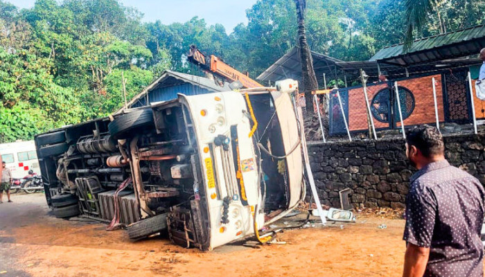 ശബരിമല ദർശനം കഴിഞ്ഞ് മടങ്ങിയ തീർഥാടകർ സഞ്ചരിച്ച ബസ് നിയന്ത്രണം വിട്ട് മറിഞ്ഞ് 10 തീർഥാടകർക്ക് പരിക്ക്. പരിക്കേറ്റവരിൽ നാലുപേരുടെ നില ഗുരുതരമാണ്. തൊടുപുഴ-പാലാ റോഡിലെ കരിങ്കുന്നം പ്ലാന്റേഷനിൽ വ്യാഴാഴ്ച രാവിലെ 5.50ഓടെയായിരുന്നു അപകടം. കോഴിക്കോട്, മലപ്പുറം, തൃശൂർ, പാലക്കാട് സ്വദേശികളായ തീർഥാടകർ സഞ്ചരിച്ച ‘വിവേകാനന്ദ ട്രാവൽസ്’ ബസാണ് മറിഞ്ഞത്. തീർഥാടകരും ജീവനക്കാരുമടക്കം 51പേരാണ് വാഹനത്തിലുണ്ടായിരുന്നത്.