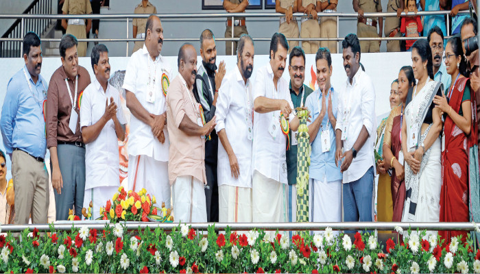 ഒളിമ്പിക്സ് മാതൃകയിൽ സംസ്ഥാനത്ത് ആദ്യമായി നടത്തുന്ന സ്കൂൾ കായിക മേളയ്ക്ക് തുടക്കം. പൊതുവിദ്യാഭ്യാസ ഡയറക്ടർ ജീവൻ ബാബു പതാക ഉയർത്തി. ഒളിമ്പ്യൻ പി ആർ ശ്രീജേഷ് ദീപശിഖ തെളിയിച്ചു. മന്ത്രി വി ശിവൻകുട്ടി കായിക മേളയും സാംസ്കാരിക പരിപാടികൾ നടൻ മമ്മൂട്ടിയും ഉദ്ഘാടനം ചെയ്തു. ഇന്ന് മുതൽ 11 വരെ കൊച്ചിയിലെ 17 വേദികളിലായാണ് കായികമേള. 20,000 താരങ്ങൾ മേളയിൽ പങ്കെടുക്കുന്നുണ്ട്. സ്റ്റേഡിയത്തിൽ വച്ച് ഹൈജംപ് താരം ജുവൽ തോമസ് ദീപശിഖ ഏറ്റുവാങ്ങി. തുടർന്ന് വനിത ഫുട്ബോൾ താരങ്ങളായ അഖില, ശിൽജി ഷാജി, സ്പെഷ്യൽ വിദ്യാർത്ഥികളായ യശ്വിത എസ്, അനു ബിനു എന്നിവർക്ക് കൈമാറി. ഇവരിൽ നിന്നും മന്ത്രി ശിവൻകുട്ടി, പി ആർ ശ്രീജേഷ് എന്നിവർ ചേർന്ന് ദീപശിഖ ഏറ്റുവാങ്ങി. ഇതിനുശേഷം മൈതാനത്ത് സജ്ജമാക്കിയ മേളയുടെ ഭാഗ്യചിഹ്നമായ തക്കുടുവിന്റെ കൈയിലുള്ള വലിയ ദീപശിഖ പി ആർ ശ്രീജേഷ് തെളിയിച്ചു. സ്പെഷ്യൽ സ്കൂൾ വിദ്യാർത്ഥി ശ്രീലക്ഷ്മിക്കൊപ്പമാണ് ശ്രീജേഷ് ദീപശിഖ തെളിയിച്ചത്.