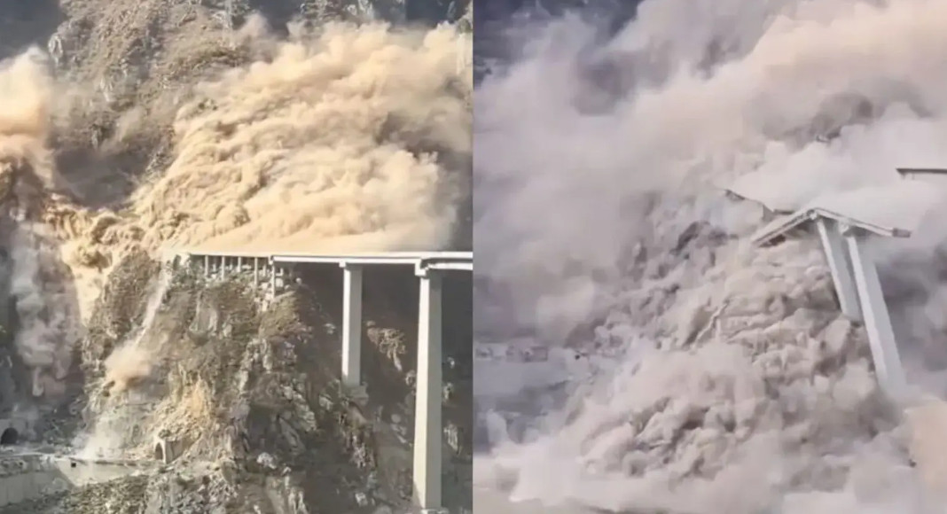 ആളപായം റിപ്പോർട്ട് ചെയ്തിട്ടില്ല. പ്രദേശത്തെ മണ്ണിടിച്ചിലും നിർമ്മാണത്തിലെ അപാകതയുമാണ് പാലം തകരാനുള്ള കാരണമെന്ന് അധികൃതര് പറയുന്നു. ചൊവ്വാഴ്ച പ്രാദേശിക സമയം ഉച്ചകഴിഞ്ഞ് മൂന്ന് മണിയോടെയായിരുന്നു സംഭവം. ദൃശ്യങ്ങൾ ചൈനീസ് സമൂഹമാധ്യമത്തിൽ വ്യാപകമായി പ്രചരിക്കുന്നുണ്ട്. തിങ്കളാഴ്ച പാലത്തിന്റെ ചില ഭാഗങ്ങളിൽ വിള്ളലുകൾ കണ്ടെത്തിയിരുന്നു. അപകട സാധ്യത കണക്കിലെടുത്ത് പാലത്തിലൂടെയുള്ള ഗതാഗതം പൂർണമായും നിർത്തലാക്കിയിരുന്നു. സംഭവത്തിൽ അന്വേഷണം ആരംഭിച്ചിട്ടുണ്ട്.