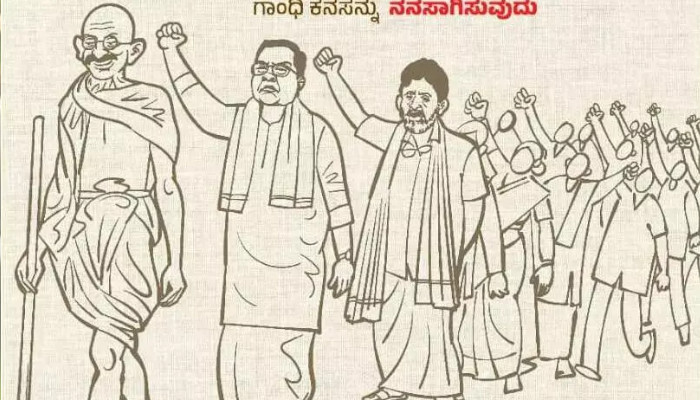 ഗാന്ധിയുടെ ദണ്ഡിയാത്രയെ അനുസ്മരിപ്പിക്കുന്ന പരസ്യത്തില് അദ്ദേഹത്തിന് പിന്നില് കര്ണാടക മുഖ്യമന്ത്രി സിദ്ധരാമയ്യയും ഉപമുഖ്യമന്ത്രി ഡികെ ശിവകുമാറും പിന്നെ ജനക്കൂട്ടവുമാണുള്ളത്. 1924ല് ഗാന്ധിജിയുടെ നേതൃത്വത്തില് ബെലഗാവിയില് നടന്ന അഖിലേന്ത്യാ കോണ്ഗ്രസ് സമ്മേളന ശതാബ്ദി ആഘോഷത്തിന്റെ ഭാഗമായാണ് പരിപാടി സംഘടിപ്പിക്കുന്നത്.