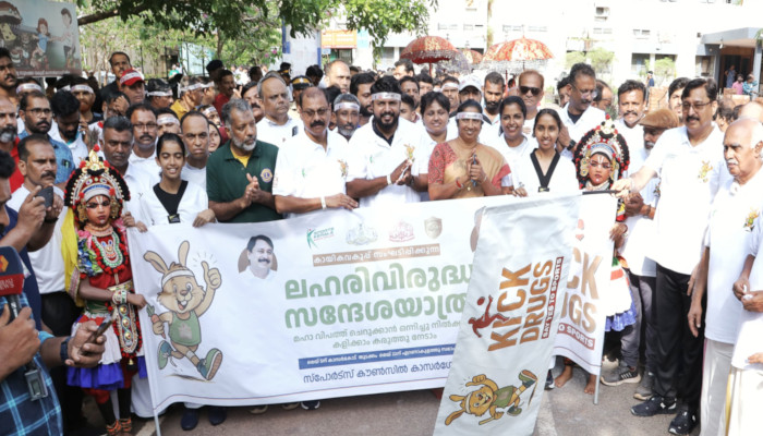 കേരളത്തിന്റെ മണ്ണിൽ നിന്ന് ലഹരിയുടെ വിഷവിത്തുകളെ വേരോടെ പിഴുതെറിയാൻ കായികവകുപ്പ് ആരംഭിച്ച ‘കിക്ക് ഡ്രഗ്സ് സേ യെസ് ടു സ്പോർട്സ്’ കാമ്പയിന് കാസർകോട് ഉജ്ജ്വല തുടക്കം. കായികമന്ത്രി വി അബ്ദുറഹിമാൻ അധ്യക്ഷത വഹിച്ച ലഹരിവിരുദ്ധ സന്ദേശയാത്രയുടെ സംസ്ഥാനതല ഉദ്ഘാടനം വീഡിയോ കോൺഫറൻസിലൂടെ മുഖ്യമന്ത്രി പിണറായി വിജയൻ നിർവഹിച്ചു. മിനി മാരത്തോണോടെയാണ് കാസർകോട് ‘കിക്ക് ഡ്രഗ്സ്’ കാമ്പയിൻ പരിപാടികൾക്ക് തുടക്കമായത്. ഉദുമ പാലക്കുന്നിൽ നിന്ന് ആരംഭിച്ച മാരത്തോൺ ജില്ലാ പൊലീസ് മേധാവി ബി വി വിജയ ഭരത് ഫ്ലാഗ് ഓഫ് ചെയ്തു. ഏകദേശം 13 കിലോമീറ്റർ ദൂരമുള്ള മാരത്തോൺ കാസർകോട് കളക്ടറേറ്റിലാണ് സമാപിച്ചത്. കുട്ടികളും മുതിർന്നവരുമായി നൂറിലധികം പേർ മാരത്തോണിൽ പങ്കെടുത്തു. തുടർന്ന്, അവിടെ നിന്ന് കായിക മന്ത്രി വി അബ്ദുറഹിമാൻ ഫ്ലാഗ് ഓഫ് ചെയ്ത വാക്കത്തോൺ പുതിയ ബസ് സ്റ്റാൻഡിൽ അവസാനിച്ചു.