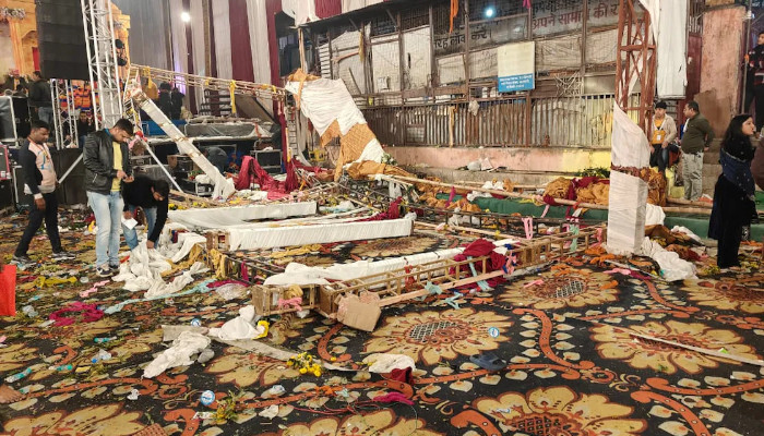 മഹന്ത് പരിസാറിലെ മാതാ ജാഗരണിലെ മരവും ഇരുമ്പും കൊണ്ട് നിർമ്മിച്ച വേദിയാണ് നിലംപൊത്തിയത്. മുൻകൂർ അനുമതിയില്ലാത്ത സംഘടിപ്പിച്ച പരിപാടിയിൽ 1500 മുതൽ 2000 പേരാണ് പങ്കെടുത്തത്. പരിക്കേറ്റവരെ ആശുപത്രിയില് പ്രവേശിപ്പിച്ചു.