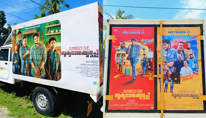 സിനിമയുടെ പരസ്യങ്ങൾക്ക് എന്നും പുതുമയുള്ളതും വ്യത്യസ്ഥനുമായ രീതികൾ അവലംബിക്കുന്നത് സിനിമകൾക്ക് ഏറെ ഗുണകരമാകുന്നതാണ്. ഇവിടെ ഷെബി ചൗഘട്ട് സംവിധാനം ചെയ്യുന്ന ഗ്യാംങ്സ് ഓഫ് സുകുമാരക്കുറുപ്പ് എന്ന ചിത്രത്തിനാണ് അണിയറ പ്രവർത്തകർ കൗതുകകരമായ ഒരു പ്രമോഷൻ നടത്തുന്നത്. മുമ്പും ഉത്തരം നടപടികൾ ഉണ്ടായിട്ടുണ്ടെങ്കിലും സമീപകാലത്ത് ഇപ്പോഴാണ് നടത്തുന്നത്. ഓണക്കാലം ആഘോഷിക്കാനായി സെപ്റ്റംബർ പതിമൂന്നിനാണ് ഈ ചിത്രം പ്രദർശനത്തിനെത്തുന്നത് കേരളത്തിലെ എല്ലാ ജില്ലകളിലും ഗ്യാങ്സ് ഓഫ് സുകുമാരക്കുറുപ്പ് എന്ന സിനിമയുടെ ഡിസ്പ്ലേ ബോർഡുകൾ പ്രദർശിപ്പിച്ചുകൊണ്ടുള്ള വാഹനങ്ങൾ ഓടിത്തുടങ്ങി. 30ൽ അധികം വാഹനങ്ങളാണ് സെപ്റ്റംബർ പതിമൂന്നാം തീയതി ഓണ ചിത്രമായി തിയറ്ററുകളിൽ എത്തുന്ന ഗ്യാങ്സ് ഓഫ് സുകുമാർ കുറുപ്പിന്റെ പ്രചരണാർത്ഥം ഓടുന്നത്.