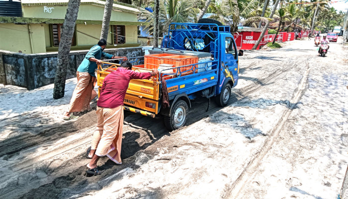 ജെസിബി ഉൾപ്പടെയുള്ള സംവിധാനങ്ങളുമായി എത്തിയ സംഘത്തെയാണ് തടഞ്ഞത്. ഈ പ്രദേശത്തു കടലും റോഡും തമ്മിൽ ചുവടുകളുടെ അകലം മാത്രമാണുള്ളത്. ഏതുനിമിഷവും റോഡ് കടലെടത്തു പോകാവുന്ന സ്ഥിതിയിലാണ്. ഇത് ഗതാഗതത്തിന് തടസ്സം സൃഷ്ടിച്ചു. നിരവധി വണ്ടികൾ മണ്ണിൽ താഴ്ന്നു. പല ബസ് സർവീസുകളും പ്രശ്നമുള്ള സ്ഥലത്ത് വെച്ച് സർവീസ് അവസാനിപ്പിച്ചത് യാത്രക്കാരെ വലച്ചു.