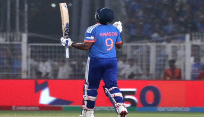 ലോകകപ്പ് ഫൈനലില്‍ ഹെൻറിയുടെ ആദ്യ ഓവറിലെ നാല് പന്തുകൾ സംയമനത്തോടെ പ്രതിരോധിച്ച സഞ്ജു. പക്വതയോടെ ബാറ്റ് വീശുന്ന മറ്റൊരു മുഖമായിരുന്നു അപ്പോള്‍ താരത്തിന്. പിന്നീട് അഞ്ചാം പന്തിൽ ഒരു ചുവട് മുന്നോട്ടാഞ്ഞു. ആ പന്ത് ലോങ് ഓണിന് മുകളിലൂടെ ഗ്യാലറിയിൽ പതിച്ചു. കേവലം ഇതൊരു സിക്സര്‍ ആയിരുന്നില്ല, നവംബർ 19ന് കണ്ണീരണിഞ്ഞ ആ മണ്ണിലും ഗ്യാലറിക്കുമുണ്ടായ കയ്പേറിയ ഓര്‍മ്മകള്‍ക്ക് മധുരപ്രതികാരം കൂടിയായിരുന്നു ഇത്. ലോക്കി ഫെർഗൂസന്റെ 147 കിലോമീറ്റർ വേഗതയെ മനോഹരമായ ഒരു ഫ്ലിക്കിലൂടെ ബൗണ്ടറി കടത്തിയും രചിൻ രവീന്ദ്രയെ തുടർച്ചയായി മൂന്ന് തവണ ഗ്യാലറിയിൽ എത്തിച്ചും സഞ്ജു തന്റെ സംഹാരരൂപം പുറത്തെടുത്തു. 33 പന്തിൽ അർധസെഞ്ചുറി. തുടർച്ചയായ മൂന്ന് അർധസെഞ്ചുറികളുമായി ടി20 ലോകകപ്പ് ചരിത്രത്തിൽ വിരാട് കോലിക്കും അഫ്രീദിക്കുമൊപ്പം അയാൾ ഇരിപ്പുറപ്പിച്ചു.