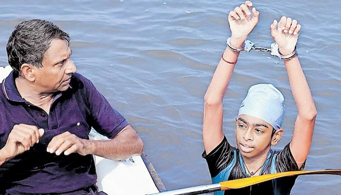 കൈകള് ബന്ധിച്ചു വേമ്പനാട്ട് കായല് 11 കിലോമീറ്റര് നീന്തിക്കടന്ന് വിദ്യാര്ത്ഥി. കോതമംഗലം സ്വദേശി സുരേന്ദ്രന്റെയും ദിവ്യയുടെയും മകന് ആദിത്യന് സുരേന്ദ്രനാണു കായല് നീന്തിക്കടന്നത്. കോതമംഗലം മാര് ബേസില് ഹയര് സെക്കന്ഡറി സ്കൂളില് ഒന്പതാം ക്ലാസ് വിദ്യാർത്ഥിയാണ് ആദിത്യന്. ആലപ്പുഴ ജില്ലയിലെ ചേര്ത്തല കൂമ്പേല് കരിയില് കടവില് നിന്നും കോട്ടയം ജില്ലയിലെ വൈക്കം ബീച്ച് വരെ ഉള്ള 11 കിലോമീറ്റര് ദൂരം 1 മണിക്കൂര് 35 മിനിറ്റ് കൊണ്ടാണ് ആദിത്യന് നീന്തിയത്.