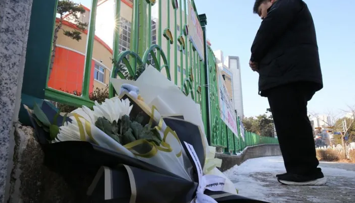 ദക്ഷിണ കൊറിയയിലെ ഒരു പ്രാഥമിക വിദ്യാലയത്തിൽ എട്ട് വയസ്സുകാരിയെ അധ്യാപിക കുത്തിക്കൊലപ്പെടുത്തി. 40 വയസുള്ള അധ്യാപിക കുറ്റം സമ്മതിച്ചിട്ടുണ്ട്. സ്കൂൾ കെട്ടിടത്തിന്റെ രണ്ടാം നിലയിൽ കുത്തേറ്റ നിലയിൽ പെൺകുട്ടിയെ കണ്ടത്തുകയായിരുന്നു. സംഭവ സമയത്ത് പെൺകുട്ടിയുടെ കൂടെ അധ്യാപികയുമുണ്ടായിരുന്നുവെന്ന് കണ്ടത്തിയതിനെ തുടർന്ന് പൊലീസ് ചോദ്യം ചെയ്തതോടെയാണ് കുറ്റസമ്മതം നടത്തിയത്. കുട്ടിയുടെ കഴുത്തിലും കയ്യിലും മുറിവുകൾ ഉണ്ടായിരുന്നു.