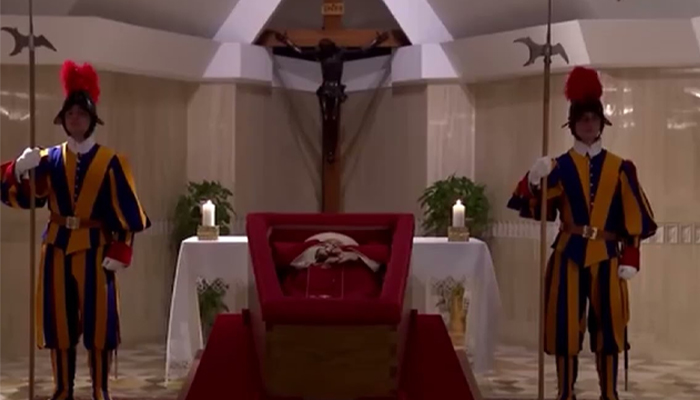 ആഗോള കത്തോലിക്കാ സഭയുടെ അധ്യക്ഷന് അന്തരിച്ച ഫ്രാന്സിസ് മാര്പാപ്പയ്ക്ക് അന്ത്യാഞ്ജലി അര്പ്പിക്കാന് വത്തിക്കാനിലേക്ക് പതിനായിരക്കണക്കിന് വിശ്വാസികള്. പന്ത്രണ്ട് വർഷം താമസിച്ചിരുന്ന സാന്താ മാർത്തയിൽ നിന്ന് വിലാപയാത്രയായി ഫ്രാൻസിസ് മാർപാപ്പയുടെ ഭൗതിക ശരീരം സെന്റ് പീറ്റേഴ്സ് ബസിലിക്കയിൽ എത്തിച്ചു. കർദിനാൾമാരും ആർച്ച് ബിഷപ്പുമാരും ചേർന്ന് അർപ്പിച്ച ദിവ്യബലിക്ക് ശേഷമാണ് പൊതുദർശനം ആരംഭിച്ചത്. മൂന്ന് ദിവസമാണ് പൊതുദർശനം ഉണ്ടാവുക. സിങ്ക് പൂശിയ, മരത്തില് തീര്ത്ത പെട്ടിയിലാണ് പാപ്പയുടെ മൃതദേഹം കിടത്തിയിരിക്കുന്നത്. ചുവന്ന മേലങ്കിയും കിരീടവും ധരിപ്പിച്ചിട്ടുണ്ട്.