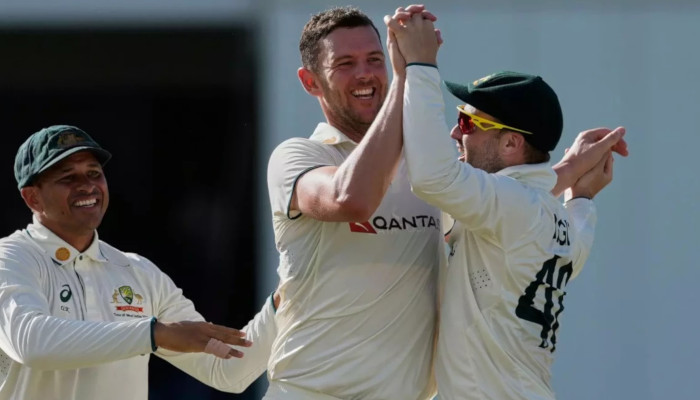 വെസ്റ്റ് ഇൻഡീസിനെതിരായ ടെസ്റ്റ് പരമ്പരയിലെ ആദ്യ മത്സരത്തില് ഓസ്ട്രേലിയയ്ക്ക് തകർപ്പൻ ജയം. 301 റൺസ് ലക്ഷ്യം പിന്തുടർന്ന വെസ്റ്റ് ഇൻഡീസ് ടീം മൂന്നാം ദിവസം നാലാം ഇന്നിങ്സില് 33.4 ഓവറിൽ 141 റൺസിന് തകർന്നടിഞ്ഞു. വിന്ഡീസിന്റെ രണ്ടാം ഇന്നിങ്സില് അഞ്ച് വിക്കറ്റുകൾ വീഴ്ത്തിയ ജോഷ് ഹേസൽവുഡാണ് വിജയശില്പി. ആദ്യ ഇന്നിങ്സില് ഓസ്ട്രേലിയ 180 റൺസ് നേടിയപ്പോൾ ആതിഥേയ ടീം 190 റൺസ് അടിച്ചെടുത്ത് പത്ത് റണ്സിന്റെ ലീഡ് കരസ്ഥമാക്കിയിരുന്നു. രണ്ടാം ഇന്നിങ്സില് ഓസ്ട്രേലിയ 310 റൺസ് നേടി മികച്ച പ്രകടനം പുറത്തെടുത്തു. ട്രാവിസ് ഹെഡ് 61, ബ്യൂ വെബ്സ്റ്റർ 63, അലക്സ് ക്യാരി 65 എന്നിവർ ഓസീസിനായി മികച്ച സംഭാവനകൾ നൽകി. ഹെഡും വെബ്സ്റ്ററും ചേർന്ന അഞ്ചാം വിക്കറ്റിൽ 102 റൺസ് കൂട്ടിച്ചേർത്തിരുന്നു. 301 റണ്സ് വിജയലക്ഷ്യവുമായി ബാറ്റിങ്ങിന് ഇറങ്ങിയ വിൻഡീസ് രണ്ടാം ഇന്നിങ്സിൽ വെറും 141 റൺസിന് ഓൾഔട്ടായി.