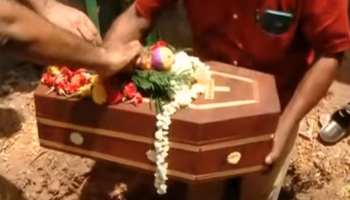 എറണാകുളം പുല്ലേപ്പടിയിലുള്ള പൊതുശ്മശാനത്തില് നടന്ന സംസ്കാരത്തിൽ മേയർ അനിൽ കുമാർ കുഞ്ഞിന്റെ മൃതദേഹത്തിൽ പൂക്കൾ സമർപ്പിച്ചു. കളിപ്പാട്ടങ്ങളും നൽകിയാണ് കേരള പൊലീസ് കുഞ്ഞിനെ യാത്രയാക്കിയത്. ആദരസൂചകമായി പ്രത്യേക സല്യൂട്ടും നൽകി. മേയറുൾപ്പെടെയാണ് അലങ്കരിച്ച കുഞ്ഞുപെട്ടി കുഴിയിലേയ്ക്ക് വച്ചത്. പിന്നാലെ മണ്ണിട്ട് മൂടിയപ്പോൾ കണ്ടുനിന്നവരുടെ കണ്ണുകളും നിറഞ്ഞു. അടുത്തിടെ രണ്ടാനച്ഛനും അമ്മയും കൊലപ്പെടുത്തിയ പിഞ്ചുകുഞ്ഞിനെ അടക്കം ചെയ്തതിന് തൊട്ടടുത്തായാണ് ഈ കുഞ്ഞിനെയും സംസ്കരിച്ചത്.