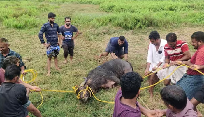 അമ്പലത്തുകുളങ്ങര കോരായി താഴം കനാല് ഫീല്ഡ് ബോത്തി ചാലിയിലേക്ക് ഓടിയിറങ്ങിയ പോത്തിന് പുറത്തുകടക്കാനായില്ല. പിന്നീട് സ്ഥലത്ത് എത്തിയ ഉടമസ്ഥനും നാട്ടുകാരും ചേര്ന്ന് കീഴ്പ്പെടുത്തി പുറത്തേക്ക് എത്തിക്കുകയായിരുന്നു. കാക്കൂര് പോലീസും നരിക്കുനിയില് നിന്നെത്തിയ അഗ്നിരക്ഷാ സേനയും രക്ഷാപ്രവര്ത്തനത്തില് പങ്കെടുത്തു.