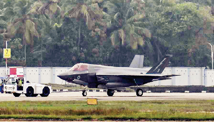 അറബിക്കടലിലെ സൈനികാഭ്യാസത്തിനെത്തിയ എച്ച്എംഎസ് പ്രിൻസ് ഓഫ് വെയിൽസ് വിമാനവാഹിനി കപ്പലിൽനിന്നു പറന്നുയർന്ന ബ്രിട്ടിഷ് നാവികസേനയുടെ അഞ്ചാം തലമുറ സ്റ്റെൽത്ത് ജെറ്റ് ആണ് ജൂൺ 14ന് ഇന്ധനം തീർന്നതിനെ തുടർന്ന് തിരുവനന്തപുരം വിമാനത്താവളത്തിൽ അടിയന്തരമായി ഇറക്കിയത്. തുടര്‍ന്ന് നടത്തിയ പരിശോധനയില്‍ ഹൈഡ്രോളിക് സംവിധാനത്തിനും ഓക്സിലറി പവർ യൂണിറ്റിനും തകരാർ കണ്ടെത്തിയത്. ഇതോടെ കപ്പലിൽ നിന്ന് വിദഗ്ധർ എത്തിയെങ്കിലും തകരാർ പരിഹരിക്കാനായില്ല. പിന്നീട് വിമാനത്തെ ചാക്കയിലെ ഹാങ്ങർ യൂണിറ്റിലേക്ക് മാറ്റി ബ്രിട്ടനില്‍ നിന്ന് വിദഗ്ധ സംഘമെത്തി തകരാര്‍ പരിഹരിക്കുകയായിരുന്നു.