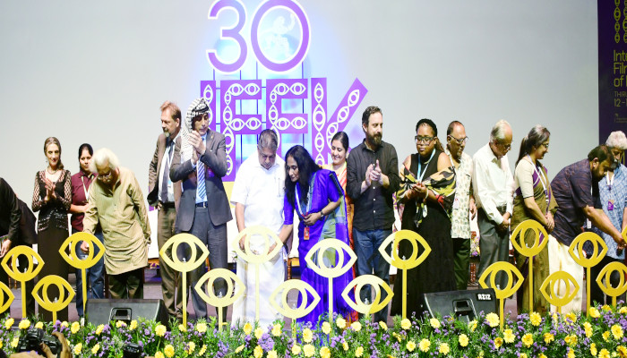 തലസ്ഥാനത്തെ സിനിമാ ആവേശത്തിന് മൂന്ന് പതിറ്റാണ്ട്. ഐഎഫ്എഫ്കെയുടെ കണ്ണുകളിൽ 30 വിളക്കുകൾ തെളിച്ചുകൊണ്ട് 30-ാമത് രാജ്യാന്തര ചലച്ചിത്ര മേളയ്ക്ക് നിശാഗന്ധിയില് തിരിതെളിഞ്ഞു. നിശാഗന്ധിയില് നിറഞ്ഞ സിനിമാപ്രേമികളെ സാക്ഷിയാക്കി മന്ത്രി സജി ചെറിയാനും വിശിഷ്ട അതിഥികളും ചേർന്നാണ് മേളയ്ക്ക് തിരശീല ഉയര്ത്തിയത്. ഇനിയുള്ള ഏഴ് ദിനരാത്രങ്ങള് നഗരത്തിന് സിനിമാ വെെബ് സമ്മാനിക്കും. സിനിമയും സൗഹൃദവും പങ്കുവയ്ക്കാനായി ആയിരക്കണക്കിന് സിനിമാപ്രേമികളാണ് തലസ്ഥാനത്തേക്ക് ഒഴുകിയെത്തിയത്.