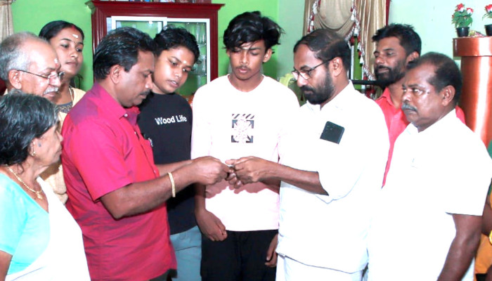 സിപിഐ ജില്ലാ സെക്രട്ടറി ടി ജെ ആഞ്ചലോസ് തുക ഏറ്റുവാങ്ങി. ജില്ലാ എക്സിക്യൂട്ടീവ് അംഗം കെ കാർത്തികേയൻ, മണ്ഡലം സെക്രട്ടറി സി വി രാജീവ്, ജില്ലാ പഞ്ചായത്തംഗം എ ശോഭ, മണ്ഡലം സെക്രട്ടറിയേറ്റംഗം വടക്കടം സുകുമാരൻ കാർത്തികപ്പള്ളി ലോക്കൽ കമ്മിറ്റി സെക്രട്ടറി സുഭാഷ് പിള്ളക്കടവ് എന്നിവർ പങ്കെടുത്തു. കയർ തൊഴിലാളിയായ അമ്മ ഓമനയും വീട്ടമ്മയായ ഭാര്യ സുജ മക്കളായ പ്ലസ് ടു വിദ്യാർത്ഥി കാശിനാഥൻ എട്ടാം ക്ലാസ് വിദ്യാർത്ഥി കിരൺ നാഥൻ എന്നിവരടങ്ങുന്നതാണ് ബിജുവിന്റെ കുടുംബം.