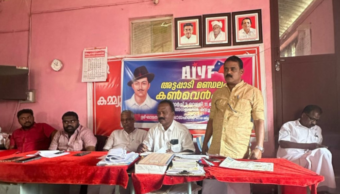 എഐവൈഎഫ് അട്ടപ്പാടി മണ്ഡല കൺവെൻഷൻ അഗളി സി പി ഐ ഓഫീസിൽ സിപിഐ ജില്ല അസി. സെക്രട്ടറി പൊറ്റശ്ശേരി മണികണ്ഠൻ ഉദ്ഘാടനം ചെയ്തു. എ ഐ വൈ എഫ് അട്ടപ്പാടി മണ്ഡലം സെക്രട്ടറി അരുൺ ഗാന്ധി സ്വാഗതവും പ്രസിഡന്റ് കാർത്തിക് അധ്യക്ഷതയും വഹിച്ചു. ജില്ലാ പ്രസിഡന്റ് പി നൗഷാദ് മുഖ്യപ്രഭാഷണം നടത്തി. സിപിഐ ജില്ലാ എക്സി.അംഗം സി രാധാകൃഷ്ണൻ, അട്ടപ്പാടി ബ്ലോക്ക് പഞ്ചായത്ത് പ്രസിഡന്റ് മരുതി മുരുകൻ, സിപിഐ മണ്ഡലം സെക്രട്ടറി ഡി രവി, അസി. സെക്രട്ടറി കെ ആർ രവീന്ദ്രദാസ്, സെക്രട്ടറിയേറ്റ് അംഗം പിജി ബാബു തുടങ്ങിയവർ സംസാരിച്ചു. കോട്ടത്തറയിൽ നിന്നും ആനക്കട്ടി വരെയുള്ള അന്തർ സംസ്ഥാന പാതയുടെ ശോചനീയാവസ്ഥയ്ക്ക് പരിഹാരം കണ്ടില്ലെങ്കിൽ പ്രത്യക്ഷ സമരത്തിന് ഇറങ്ങാമെന്നും കൺവൻഷൻ തീരുമാനിച്ചു. ഭാരവാഹികളായി മുരുകേഷ് ചെറുനാലി (പ്രസിഡന്റ്), കെ സി ഷിനോജ് (സെക്രട്ടറി), രഞ്ജിത്ത് സി ആർ, അലി സി കെ (ജോയിൻ സെക്രട്ടറിമാര്), പ്രജ, വിഷ്ണു (വൈസ് പ്രസിഡന്റുമാര്) എന്നിവരെ തിരഞ്ഞെടുത്തു.