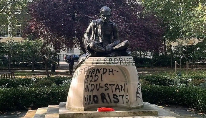 ലണ്ടനിലെ ഗാന്ധി പ്രതിമയ്ക്ക് നേരെയുണ്ടായ ആക്രമണത്തിൽ ശക്തമായി അപലപിച്ച് ഇന്ത്യൻ ഹൈക്കമ്മിഷൻ. അഹിംസ എന്ന ആശയത്തിനും മഹാത്മാഗാന്ധിയുടെ പൈതൃകത്തിനും നേരെയുണ്ടായ ആക്രമണമെന്ന് ഇന്ത്യൻ ഹൈക്കമ്മിഷൻ പ്രതികരിച്ചു. ഇതിനെ “ലജ്ജാകരമായ പ്രവൃത്തി” എന്നും അഹിംസയുടെ പൈതൃകത്തിനു നേരെയുള്ള ആക്രമണമാണെന്നും വിശേഷിപ്പിച്ചു. ഗാന്ധിജയന്തി ആഘോഷങ്ങൾ അടുത്തിരിക്കേയാണ് ലണ്ടനിലെ ടാവിസ്റ്റോക്ക് സ്ക്വയറിൽ സ്ഥാപിച്ചിട്ടുള്ള മഹാത്മാഗാന്ധിയുടെ വെങ്കല പ്രതിമ ഇന്ത്യാവിരുദ്ധ വാക്കുകൾ എഴുതിയും പെയിന്റടിച്ചും വികൃതമാക്കിയത്.