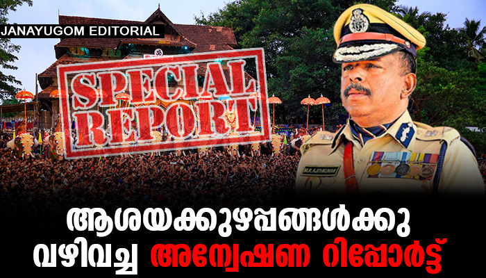 തൃശൂർ പൂരം അലങ്കോലപ്പെട്ട സംഭവത്തെപ്പറ്റി എഡിജിപി സര്ക്കാരിന് സമർപ്പിച്ച അന്വേഷണ റിപ്പോർട്ട് പുറത്തുവരാനിരിക്കുന്നതേയുള്ളു. അന്വേഷണം പ്രഖ്യാപിച്ച് അഞ്ചുമാസം പിന്നിട്ടിട്ടും റിപ്പോർട്ട് സമർപ്പിക്കാതിരുന്നത് വിവാദമാവുകയും അങ്ങനെ ഒരന്വേഷണമേ നടന്നിട്ടില്ലെന്ന് പൊലീസിൽനിന്നും വിവരാവകാശരേഖയ്ക്ക് മറുപടി നൽകുകയും തുടർന്ന് ബന്ധപ്പെട്ട ഉദ്യോഗസ്ഥൻ സസ്പെൻഷനിലാകുകയും ചെയ്ത നാടകങ്ങൾക്ക് വിരാമമിട്ടാണ് ഇപ്പോൾ അന്വേഷണ ഉദ്യോഗസ്ഥൻ റിപ്പോർട്ട് സമർപ്പിച്ചിട്ടുള്ളത്. മുഖ്യമന്ത്രി നൽകിയ അന്തിമ സമയപരിധിയാണ്, ഇപ്പോഴെങ്കിലും റിപ്പോർട്ട് സമർപ്പിക്കാൻ വഴിയൊരുക്കിയതെന്ന് വ്യക്തം. വിഷയത്തിന്റെ പ്രാധാന്യം കണക്കിലെടുത്ത് സമയബന്ധിതമായി റിപ്പോർട്ട് സമർപ്പിക്കാതിരിക്കുന്നതിലും അന്വേഷണമേ ഉണ്ടായിട്ടില്ലെന്ന ആഖ്യാനം ചമയ്ക്കുന്നതിലും ബോധപൂർവമായ ശ്രമം നടന്നിട്ടുണ്ടെന്ന സംശയം തികച്ചും സ്വാഭാവികമാണ്. സംസ്ഥാനത്തെ ക്രമസമാധാനപാലനത്തിന്റെ മുഖ്യ ചുമതല വഹിക്കുന്ന ഉന്നത ഉദ്യോഗസ്ഥനുണ്ടായ ഈ കാലവിളംബം അസ്വാഭാവികവും ആസൂത്രിതവുമാണെന്ന സംശയം, മറിച്ചാണ് വസ്തുതയെന്ന് ബോധ്യപ്പെടുംവരെ പ്രസക്തമാണ്. അഭൂതപൂർവമായ ഈ കാലതാമസത്തിന്റെ കാര്യകാരണങ്ങൾ സ്വാഭാവികമായും റിപ്പോർട്ടിന്റെ ആമുഖത്തിൽ ഉണ്ടാവുമെന്നേ ഇപ്പോൾ പ്രതീക്ഷിക്കാനാവൂ. റിപ്പോര്ട്ടിന്റെ ഉള്ളടക്കത്തെപ്പറ്റി മാധ്യമങ്ങൾ ഇതിനകം പുറത്തുകൊണ്ടുവന്ന വിവരങ്ങൾ പൂരം അലങ്കോലപ്പെടുത്തിയവരെ വെള്ളപൂശാനുള്ള ശ്രമത്തിന്റെ ഭാഗമാണെന്ന സംശയം ജനിപ്പിക്കുന്നു. പൂരവുമായി ബന്ധപ്പെട്ട പ്രശ്നങ്ങളിൽ പൊലീസ് അധികാരശ്രേണിയിൽ താരതമ്യേന ഇളമുറക്കാരനായ കമ്മിഷണറും പൂരം നടത്തിപ്പുകാരായ ദേവസ്വങ്ങളുമാണെന്ന ധാരണയാണ് റിപ്പോർട്ട് നൽകുന്നതെന്നാണ് മാധ്യമവാർത്തകൾ നൽകുന്ന സൂചന. വാർത്തകൾ ശരിയാണെങ്കിൽ എഡിജിപിയുടെ റിപ്പോർട്ട് വസ്തുതകളെ പൂർണമായി പുറത്തുകൊണ്ടുവരാൻ വിസമ്മതിക്കുന്നതായി വേണം കരുതാൻ.