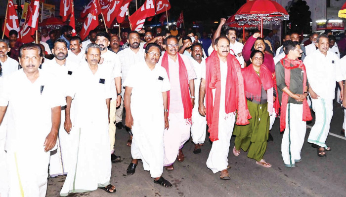 ജാഥാ ക്യാപ്റ്റൻ സി പി മുരളി, വൈസ് ക്യാപ്റ്റൻ എം ഹംസ, മാനേജര് ടി ബി മിനി, എഐടിയുസി സംസ്ഥാന സെക്രട്ടറിമാരായ കെ സി ജയപാലൻ, അഡ്വ. വി ബി ബിനു, സംസ്ഥാന വൈസ് പ്രസിഡന്റ് സി കെ ശശിധരൻ, സിഐടിയു സംസ്ഥാന വൈസ് പ്രസിഡന്റ് സുനിത കുര്യൻ, കെടിയുസി സംസ്ഥാന ജനറല് സെക്രട്ടറി കോരാണി സനില്, സേവ സംസ്ഥാന സെക്രട്ടറി സോണിയ ജോര്ജ്, എഐടിയുസി ജില്ലാ സെക്രട്ടറി അഡ്വ. വി കെ സന്തോഷ് കുമാര്, പ്രസിഡന്റ് ഒ പി എ സലാം തുടങ്ങിയവര് പ്രസംഗിച്ചു. വടക്ക്, തെക്കന് മേഖലകളില് സഞ്ചരിച്ച രണ്ട് ജാഥകള് തിങ്കളാഴ്ച സമാപിച്ചിരുന്നു.