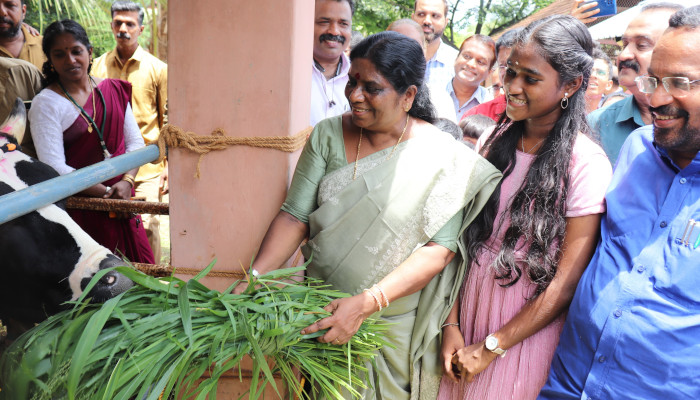 തെരഞ്ഞെടുപ്പ് ചട്ടങ്ങളും മറ്റും കാരണം നീണ്ടുപോയ ചടങ്ങ് മണ്ണുത്തിയിലെ യൂണിവേഴ്സിറ്റി ലൈവ്സ്റ്റോക്ക് ഫാമില് നടന്നു. മാതാപിതാക്കളെയും അധ്യാപകരെയും വിദ്യാര്ഥികളെയും ഫാം തൊഴിലാളികളെയും സാക്ഷി നിര്ത്തി കൃഷ്ണപ്രിയ ഫ്രീസ്വാള് ഇനത്തില്പ്പെട്ട സങ്കരയിനം കിടാരിയെ മന്ത്രി ജെ ചിഞ്ചുറാണിയില് നിന്നും ഏറ്റുവാങ്ങി. യുവതലമുറയെക്കൂടി കാര്ഷികരംഗത്തേക്ക് വരാന് പ്രേരിപ്പിക്കുന്ന തരത്തിലുള്ളതാണ് ഇത്തരം കൈമാറ്റങ്ങളെന്ന് മന്ത്രി പറഞ്ഞു.