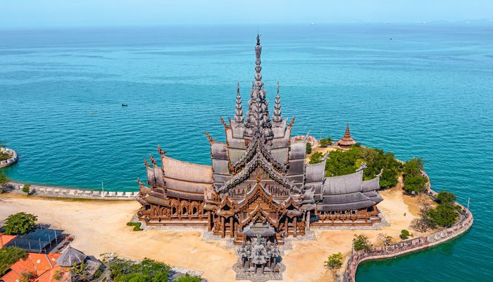 സാങ്ച്വറി ഓഫ് ട്രൂത്തിലേക്ക് പട്ടായയിൽ നിന്നും നാല് കിലോമീറ്റർ ദൂരമുണ്ട്. പുരാതനമായ ക്ഷേത്രം ഒന്നുമല്ല സഞ്ച്ച്വറി ഓഫ് ട്രൂത്ത്. 1981ലാണ് അതിന്റെ നിര്‍മ്മാണം ആരംഭിച്ചത്. അന്നുമുതൽ എല്ലാ ദിവസവും നിർമ്മാണ ജോലികൾ തുടർന്നുകൊണ്ടിരിക്കുന്നു. അടുത്ത കാലത്തൊന്നും ക്ഷേത്ര നിർമ്മാണം പൂർത്തിയാകുമെന്നും കരുതേണ്ട. 2050 ഇൽ പണി പൂർത്തിയാക്കാനാണ് നിർമ്മാതാക്കൾ ലക്ഷ്യമിട്ടിരിക്കുന്നത്. ഏതാണ്ട് 34 നില കെട്ടിടത്തിന്റെ ഉയരമുണ്ട് ക്ഷേത്രത്തിന്റെ ഗോപുരത്തിന്. നാലു വശങ്ങളിലേക്കായാണ് ക്ഷേത്രത്തിന്റെ നിർമ്മാണം. ബുദ്ധമതത്തിന്റെയും ഹിന്ദുമതത്തിന്റെയും അടിസ്ഥാന തത്വങ്ങളിൽ ഊന്നി കൊണ്ടാണ് ക്ഷേത്രം പണിതുകൊണ്ടിരിക്കുന്നത്. പണി പൂർത്തിയാകുമ്പോൾ ഒരു ലോകാത്ഭുതം തന്നെയായിരിക്കും ഈ ക്ഷേത്രം. പട്ടായയിൽ ആകെ എത്തുന്ന ആളുകളിൽ ഒരു ശതമാനം പോലും ഇവിടേക്ക് വരുന്നുണ്ടോ എന്ന കാര്യം സംശയമാണ്. പണികൾ നടക്കുകയാണെന്നതിനാൽ സേഫ്റ്റി ഹെൽമറ്റ് വച്ചു വേണം ക്ഷേത്രത്തിനടുത്തേക്ക് പോകാൻ. കുന്നിൻ ചെരുവിലെ ചെറിയൊരു ജലാശയത്തിനും കടലിനും ഇടയിലാണ് ക്ഷേത്രം. മരച്ചാർത്തുകൾക്ക് ഇടയിലൂടെ ക്ഷേത്രം കാണുമ്പോൾ നമ്മുടെ ആവേശം ഇരട്ടിക്കുകയാണ്. അത്രയ്ക്ക് അത്ഭുതകരമായ ഒരു നിർമ്മിതിയുടെ അരികിലേക്ക് ആണല്ലോ ചെല്ലുന്നത്. ശരിക്കും ഒരു ദ്വീപ് പോലുള്ള ഒരിടത്താണ് ക്ഷേത്രത്തിന്റെ സ്ഥാനം. ധാരാളം ടൂറിസ്റ്റുകൾ ഇവിടെ എത്താറുണ്ട് എന്നതിന്റെ സൂചന പോലെ മരബഞ്ചുകൾ നിരന്നു കിടക്കുന്നു. ചില നേരങ്ങളിൽ ഇവിടെ പരമ്പരാഗത തായ് നൃത്തങ്ങളും കലാപരിപാടികളും നടക്കാറുണ്ട്.