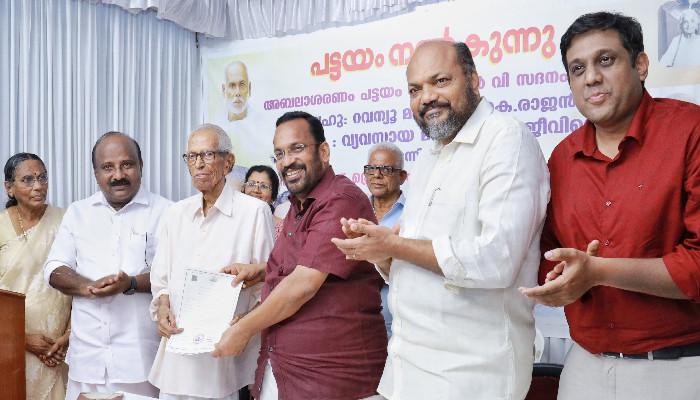 എന്റെ കാലത്ത് പട്ടയം കിട്ടി കാണാൻ ആഗ്രഹമുണ്ടെന്നായിരുന്നു മന്ത്രിയോട് സാനു മാഷിന്റ വാക്കുകൾ. അങ്ങനെയാണ് സർക്കാരിന്റെ പ്രത്യേക പരിഗണനയിൽ റൂൾ 21 പ്രകാരം എസ്എൻവി സദനം ട്രസ്റ്റിന് സൗജന്യമായി പട്ടയം നൽകാൻ തീരുമാനിച്ചതെന്ന് അബലശരണം സ്കൂളിൽ ജൂലൈ 14ന് നടന്ന ചടങ്ങിൽ സാനുമാഷിന് പട്ടയം കൈമാറിക്കൊണ്ട് മന്ത്രി കെ രാജൻ പറഞ്ഞിരുന്നു.