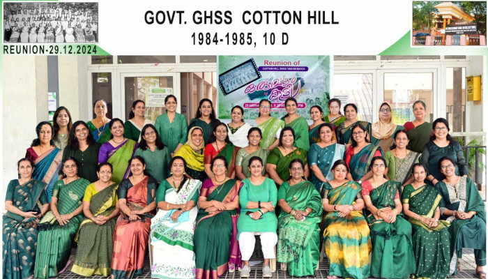ഓർമ്മച്ചെപ്പിൽ നിന്നും മഷിത്തണ്ടും വളപ്പൊട്ടും കുഞ്ഞു മയിൽപ്പീലിയും പെറുക്കാൻ കൂട്ടുകാർ ഒത്തുകൂടി. കോട്ടൺഹിൽ ഗവ. ഗേൾസ് ഹൈസ്കൂൾ 1984–85 വര്ഷത്തിലെ പത്ത് ഡി ബാച്ച് കൂട്ടുകാരാണ് 40 വർഷത്തിനിപ്പുറം സൗഹൃദം പുതുക്കാൻ ഒത്തുകൂടിയത്. പഴയ ഓര്മ്മകള് പങ്കിട്ട് എല്ലാവരും ആവേശപൂർവം പരിപാടിയിൽ പങ്കുചേർന്നു. 46 പേരിൽ 40 പേരെയും കണ്ടെത്താനായി എന്നത് സൗഹൃദ കൂട്ടായ്മയുടെ നേട്ടമായി. ഇനിയുംകണ്ടെത്താൻ കഴിയാത്തവരെ കൂടി ചേർത്ത് വീണ്ടും ഒരുമിക്കാം എന്ന ഉറപ്പു പരസ്പരം നൽകി പിരിഞ്ഞു.