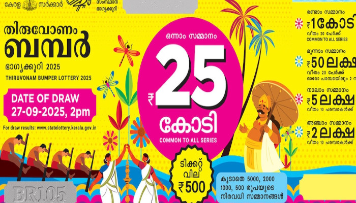 ഓണം ബംപര് രണ്ടാം സമ്മാനമായി ഒരു കോടി രൂപ വീതം 20 പേര്ക്കും മൂന്നാം സമ്മാനമായി 50 ലക്ഷം വീതം 20 പേര്ക്കും നാലാം സമ്മാനമായി അഞ്ചുലക്ഷം വീതം 10 പരമ്പരകള്ക്കും അഞ്ചാം സമ്മാനമായി രണ്ടു ലക്ഷം വീതം 10 പരമ്പരകള്ക്കും ലഭിക്കും. കൂടാതെ 5000, 2000, 1000, 500 രൂപയുടെ നിരവധി സമ്മാനങ്ങളും നല്കും.