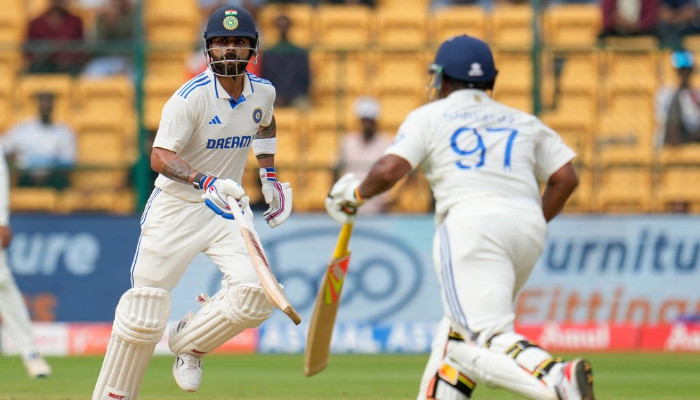 പിന്നീടാണ് ഇന്ത്യൻ ഇന്നിങ്സില് നിർണായക കൂട്ടുകെട്ട് പിറന്നത്. മൂന്നാം വിക്കറ്റില് ഒന്നിച്ച സർഫറാസ്- വിരാട് ജോഡി ഏകദിന ശൈലിയിലാണ് ബാറ്റ് വീശിയത്. ഇരുവരും ചേർന്ന് 136 റണ്സ് സ്കോര്ബോര്ഡില് ചേര്ത്തു. സർഫറാസ് 42 പന്തില് നിന്നാണ് അർധ സെഞ്ചുറി കുറിച്ചത്. ഒടുവില് 70 റണ്സില് നില്ക്കേ കോലിയുടെ പോരാട്ടം അവസാനിച്ചു. 102 പന്തില് എട്ട് ഫോറും ഒരു സിക്സും അടങ്ങുന്നതായിരുന്നു കോലിയുടെ ഇന്നിങ്സ്. അർധസെഞ്ചുറി നേടിയതോടെ ടെസ്റ്റ് ക്രിക്കറ്റില് 9000 റണ്സെന്ന നാഴികക്കല്ലും കോലി പിന്നിട്ടു.