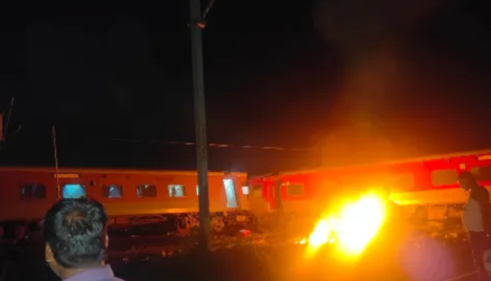 വൈകുന്നേരം 8.30 ഓടെയാണ് അപകടം ഉണ്ടായത്. യാത്രക്കാരെയും റെയിൽവേ ഉദ്യോഗസ്ഥരെയും വെളിയിലിറക്കി. എൻഡആര്എഫ് സംഘം സ്ഥലത്തെത്തിയിട്ടുണ്ട്.