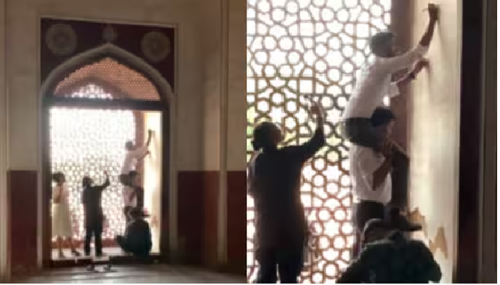 ഹുമയൂണിന്റെ ശവകുടീരത്തിന്റെ ചുമരുകളിൽ സന്ദർശകർ പേരുകളെഴുതി വികൃതമാക്കുന്നു. പേരെഴുതുന്നതിന്റെ വീഡിയോ സമൂഹമാധ്യമങ്ങളില് വ്യാപകമായി പ്രചരിച്ചതോടെ വലിയ വിമർശനങ്ങൾക്ക് കാരണമായി.Indian Civic Fails എന്ന റെഡ്ഡിറ്റ് കമ്മ്യൂണിറ്റിയിലാണ് വീഡിയോ പങ്കുവെച്ചിരിക്കുന്നത്. സന്ദർശകർ നൂറ്റാണ്ടുകൾ പഴക്കമുള്ള മുഗൾ കാലഘട്ടത്തിലെ ശവകുടീരത്തിന്റെ ചുമരുകളിൽ തങ്ങളുടെ പേരുകൾ എഴുതിവെക്കുന്ന ദൃശ്യങ്ങളാണുള്ളത്. ഒരാൾ മറ്റൊരാളുടെ തോളിൽ കയറി സ്മാരകത്തിന്റെ ചുമരില് മുകൾ ഭാഗത്ത് പേരെഴുതുന്നതും വീഡിയോയിൽ കാണം.