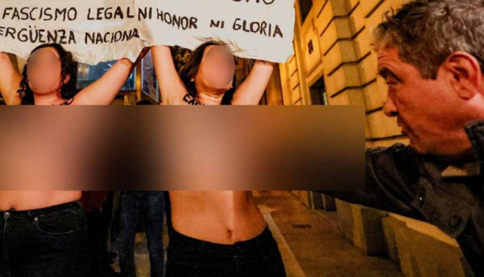 ഇരുപതാം നൂറ്റാണ്ടിലെ ഏറ്റവും വലിയ ഫാസിസ്റ്റ് സ്വേച്ഛാധിപതികളിൽ ഒരാളായിരുന്ന ഫ്രാൻസിസ്കോ ഫ്രാങ്കോയുടെ ചരമവാർഷിക ദിനത്തിൽ, അദ്ദേഹത്തിന്റെ അനുയായികൾക്കെതിരെ പ്രതിഷേധിച്ച യുവതികൾക്ക് നേരെ അതിക്രമം. വ്യാഴാഴ്ച മാഡ്രിഡിലെ ഒരു പള്ളിക്ക് പുറത്ത് അർധനഗ്നരായി പ്രതിഷേധിച്ച രണ്ട് യുവതികളുടെ മാറിടത്തിൽ ഒരു പുരുഷൻ കയറിപ്പിടിച്ചെന്നാണ് റിപ്പോർട്ട്.