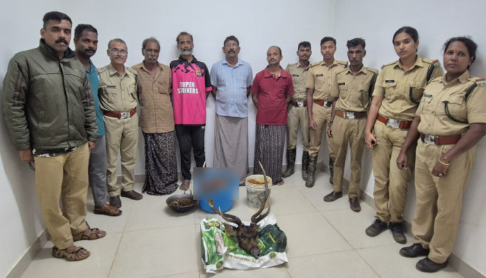 സുനിലിന്റെ വീട്ടിൽ വെച്ച് മാനിറച്ചി കറിവെക്കുന്ന സമയത്താണ് രഹസ്യവിവരത്തിന്റെ അടിസ്ഥാനത്തിലാണ് ഇന്ന് ഉച്ചയോടെ നാലുപേരെയും പിടികൂടിയത്. ഇവിടെ നിന്ന് പാചകം ചെയ്ത് ഇറച്ചിയും ബക്കറ്റിൽ സൂക്ഷിച്ചിരുന്ന ഇറച്ചിയും മറ്റ് ആയുധങ്ങളും കണ്ടെടുത്തു. നായ്ക്കൾ ഓടിച്ചു കൊണ്ടുവന്ന മാൻ ചെറിയ പരുക്കുകളോടെ പ്രദേശത്ത് തന്നെ നിൽക്കുകയും പിടിയിലായ നാൽവർ സംഘം മാനിനെ പിടികൂടി കൊന്ന് ഇറച്ചിയാക്കി കറിവെക്കുകയായിരുന്നുവെന്ന് പൊലീസ് പറഞ്ഞു.