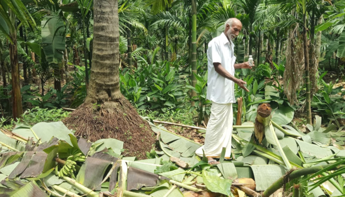 കാട്ടാന ശല്ല്യത്തിന് അടിയന്തിര പരിഹാരം കാണാമെന്ന് പറഞ്ഞ് മുഹമ്മദിനെ നാട്ടുകാരും വനം ജീവനക്കാരും ചേർന്ന് അനുനയിപ്പിക്കുകയായിരുന്നു. ശനിയാഴ്ച രാവിലെ പത്ത് മണിയോടെയാണ് സംഭവം. രോഗബാധിതരും കിടപ്പുരോഗികളുമായ രണ്ട് സഹോദരങ്ങളുടേതടക്കമുള്ള ഒന്നരയേക്കർ ഭൂമിയിലാണ് മുഹമ്മദ് കൃഷി ചെയ്തുവരുന്നത്. വാഴ, തെങ്ങ്, കമുക്, കപ്പ, ചേമ്പ്, കൂവ തുടങ്ങി നിരവധി കാർഷിക വിളകൾ കൃഷി ചെയ്തു വരുന്നുണ്ട്. ശനിയാഴ്ച രാത്രി കൃഷിയിടത്തിന് ചുറ്റും സ്ഥാപിച്ച സോളാർ ഫെൻസിംഗ് ലൈനിൽ സമീപത്തെ റബർ തോട്ടത്തിൽ നിന്നും അഞ്ച് മരങ്ങൾ തള്ളിയിട്ട് വേലി തകർത്ത ശേഷമാണ് കാട്ടാന കൃഷിയിടത്തിൽ പ്രവേശിച്ചത്. തോട്ടത്തിലെ വാഴ, കമുക്, കപ്പ തുടങ്ങിയ വിളകൾ പൂർണമായി കാട്ടാന നശിപ്പിക്കുകയും ചെയ്തു. ഭാരിച്ച കൂലി കൊടുക്കാൻ കഴിയാത്തതിനാൽ കൃഷി പണികൾ മുഴുവൻ അറുപത്തിമൂന്നുകാരനായ മുഹമ്മദും ഭാര്യയും ചേർന്നാണ് ചെയ്തിരുന്നത്. അധ്യാനിച്ചുണ്ടാക്കിയവയെല്ലം ഒരു സുപ്രഭാതത്തിൽ കാട്ടാന നശിപ്പിച്ചതിലുള്ള മനോവിഷമത്തിലാണിയാൾ ഉദ്യോഗസ്ഥർക്ക് മുൻപിൽ ആത്മഹത്യ ഭീഷണി മുഴക്കിയത്. കുലച്ചതും കുലയ്ക്കാറായതുമായ നൂറ് കണക്കിന് വാഴകളും കായ്ച്ചതും കായ്ക്കാറയതുമായ നിരവധി കമുകുകളും കപ്പയടക്കം കാട്ടാന നശിപ്പിച്ചു. കഴിഞ്ഞ രണ്ട് വർഷം കാട്ടാന കൃഷി നശിപ്പിച്ചതിന് അപേക്ഷ നൽകിയെങ്കിലും വനം വകുപ്പിൽ നിന്ന് നഷ്ടപരിഹാരം ലഭിച്ചിട്ടില്ലെന്ന് മുഹമ്മദ് പറയുന്നു. ഇയാളുടെ കൃഷിയിടത്തിലെ നാനൂറ് വാഴകളാണ് കഴിഞ്ഞ വർഷം മാത്രം കാട്ടാന നശിപ്പിച്ചത്. അടിയന്തിരമായി കാട്ടാന ്രപശ്നം പരിഹരിക്കാമെന്ന റെയ്ഞ്ച് ഓഫീസറുടെ ഉറപ്പിലാണ് മുഹമ്മദ് ആത്മഹത്യാ ഭീഷണി അവസാനിപ്പിച്ചത്.