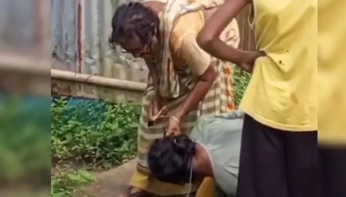 ദൃശ്യങ്ങളിൽ ഒരു സ്ത്രീയുടെ കൈ പുറകിൽ കെട്ടി അവരുടെ മുഖം അഴുക്കുചാലിലേക്ക് താഴ്ത്തുന്നത് കാണാം. ഒരു സ്ത്രീ അവരുടെ മുടിയിൽ പിടിച്ച് വലിക്കുകയും അവർ നിലവിളിക്കുകയും ചെയ്യുന്നു. ചില ആൺകുട്ടികൾ ഉൾപ്പെടെ നിരവധി ആളുകൾ സംഭവം കാണുകയും ഫോണിൽ ഷൂട്ട് ചെയ്യുകയും ചെയ്യുന്നുണ്ട്. സ്ത്രീയുടെ മുടി മുറിക്കുന്നത് ബിജെപി ബന്ധമുള്ള സ്ത്രീയാണെന്നും ആരോപണം ഉയരുന്നുണ്ട്.
